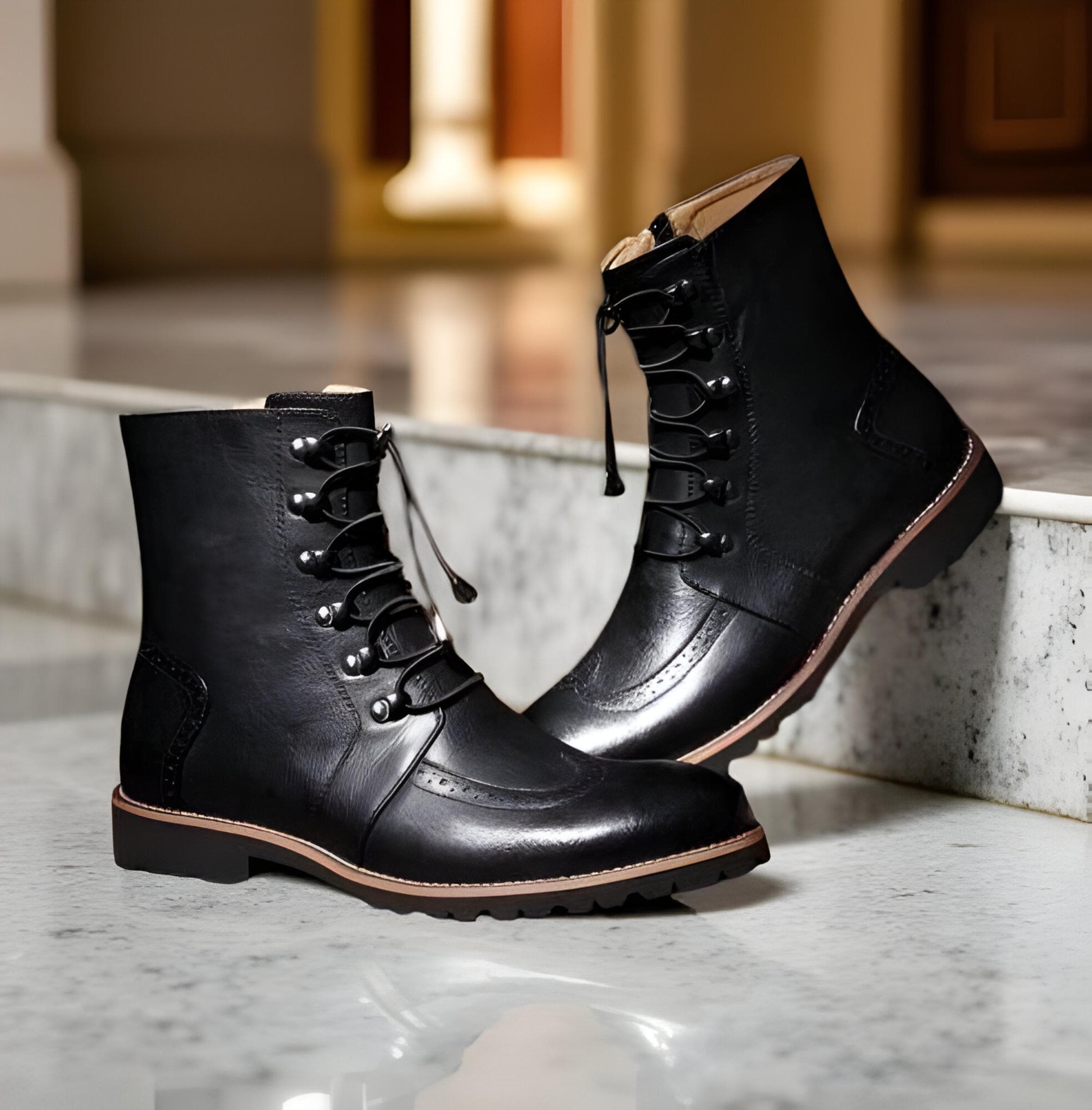 Handmade Leather Wingtip Boots Warm Plush Lining Goodyear