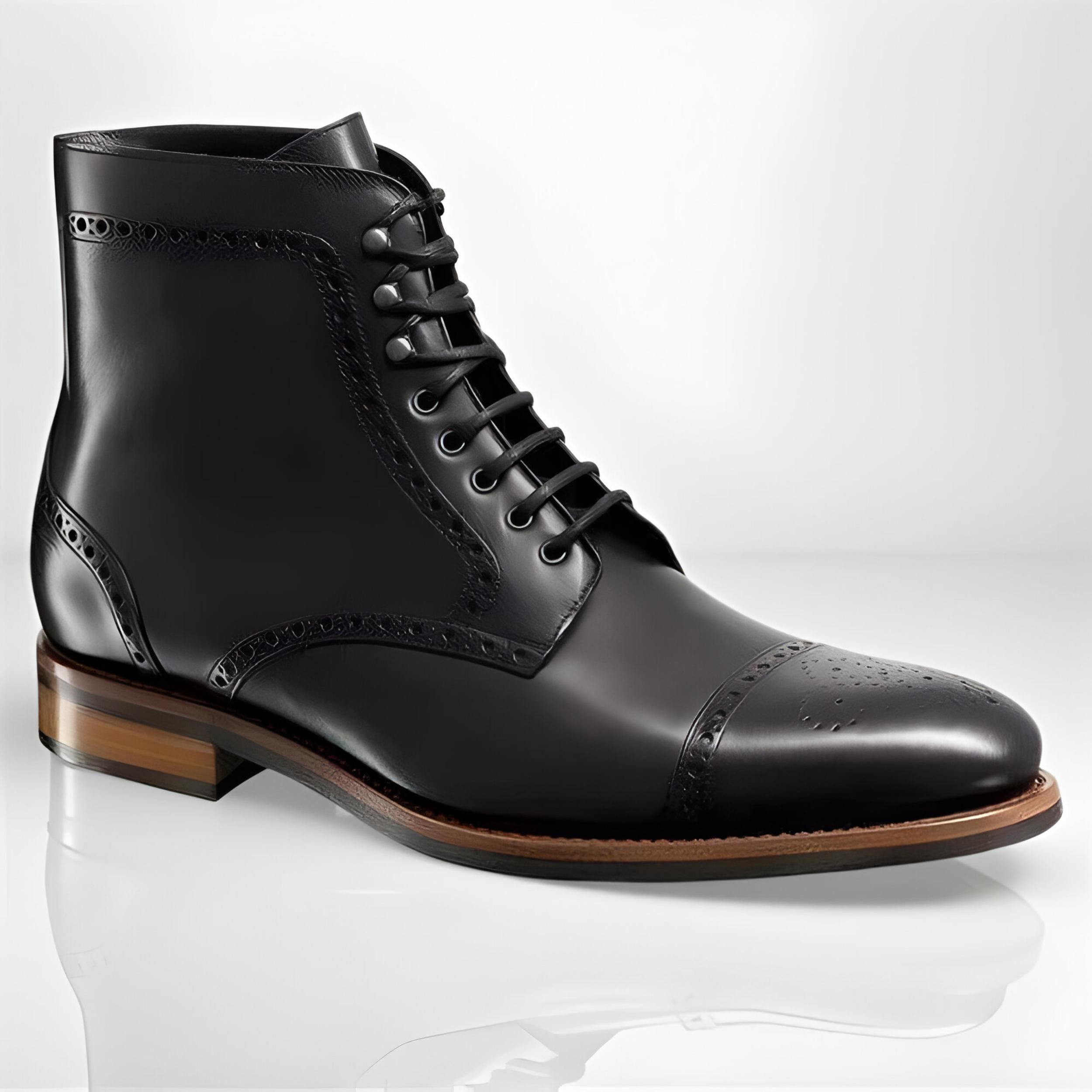 Handmade Men’s Black Leather Ankle Boots Lace Up