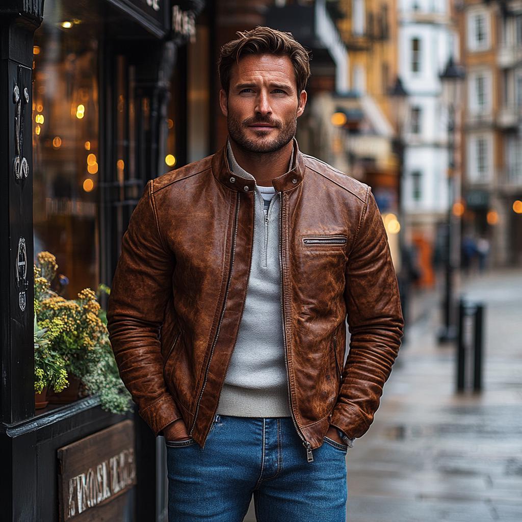 Men’s Leather Jacket Biker Handmade Sheepskin Motorcycle Brown Genuine Leather jacket