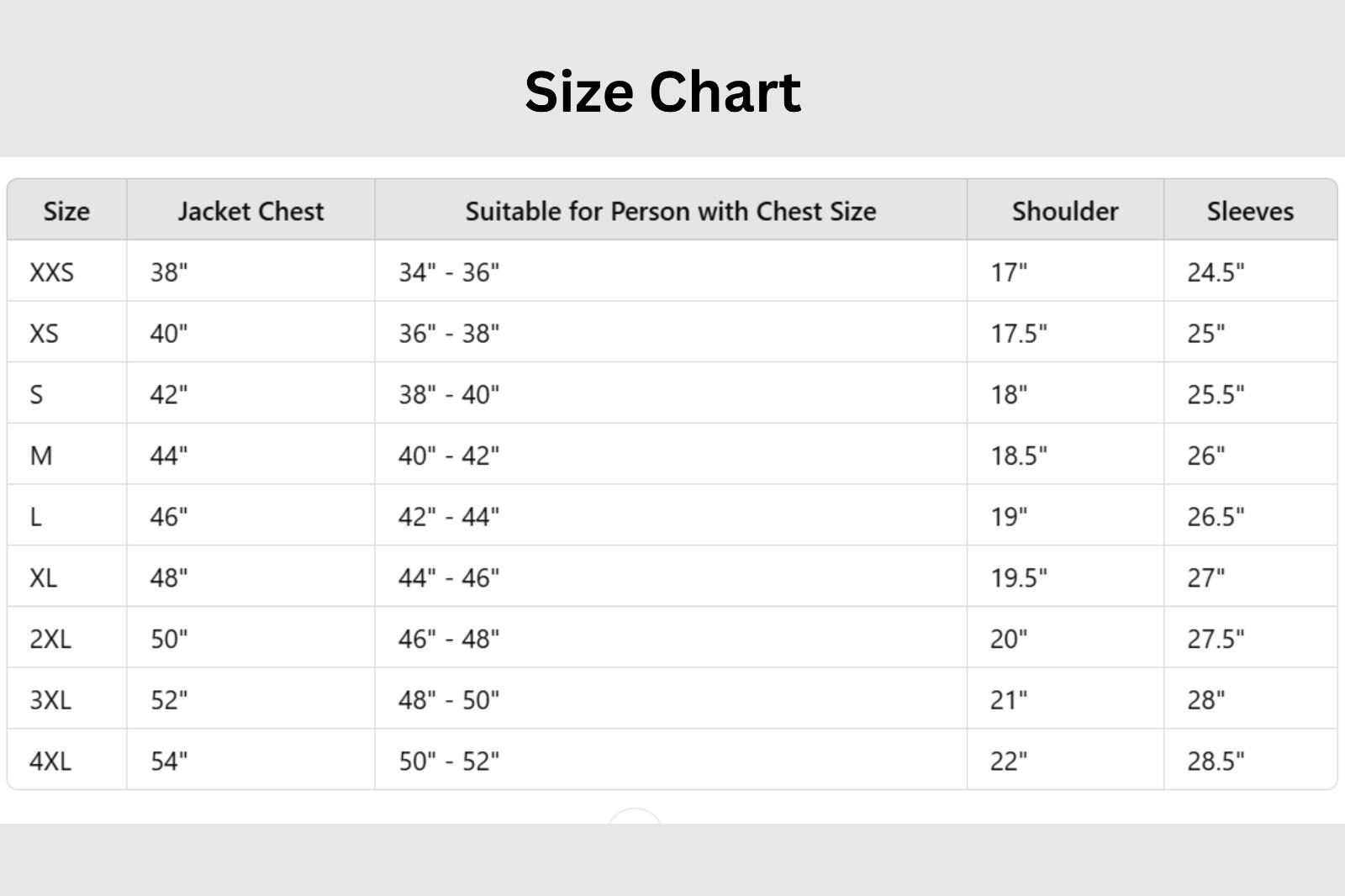 Make sure to look at the sizing guide chart to get the best fitted size for yourself.